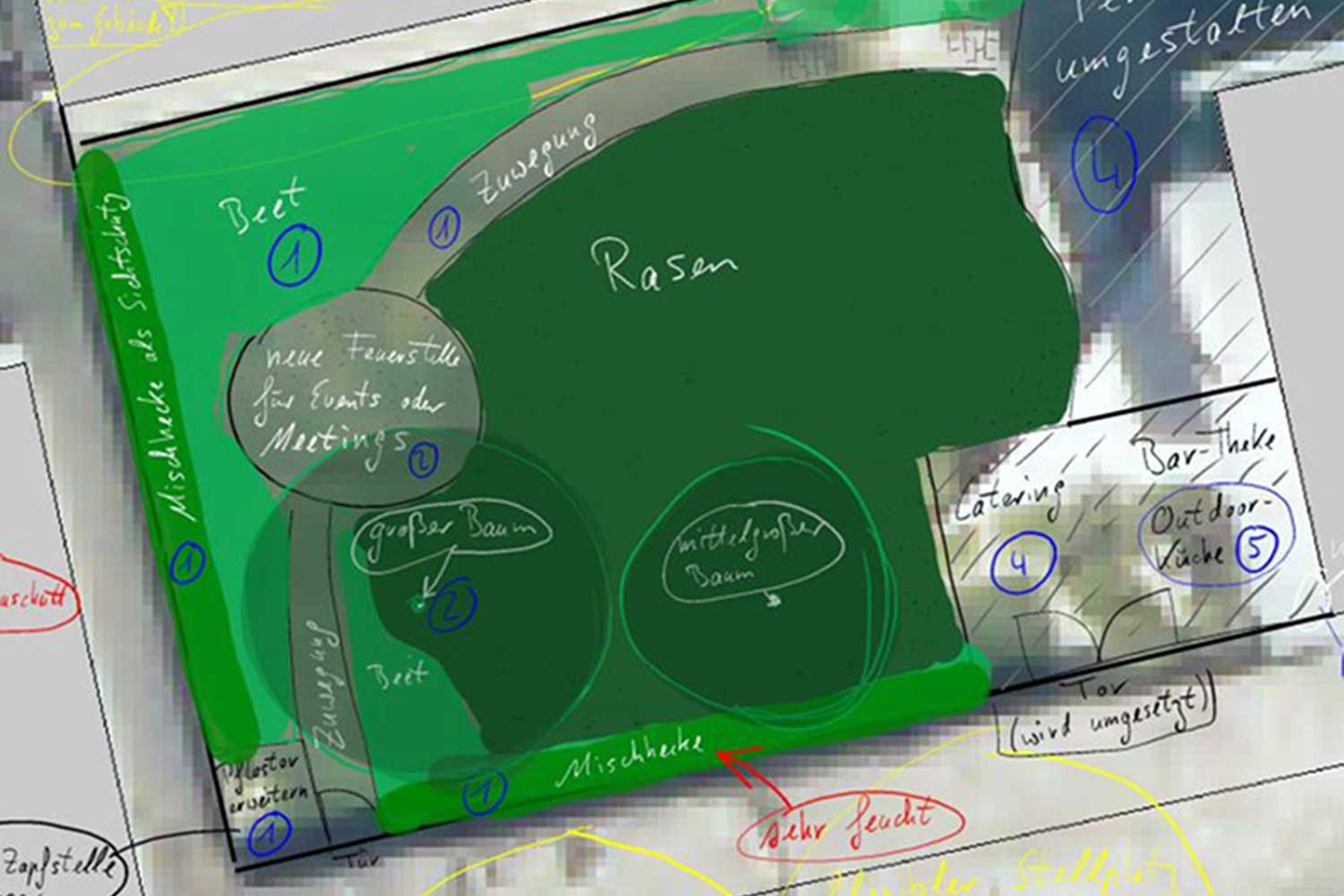 Der erste Schritt zur Gartengestaltung: Gestaltungskonzept, Inspirationen und Denkanstöße in Verbindung mit Drohnenfotografie.